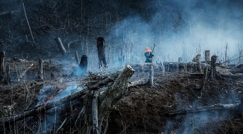 - Tháng 3/2014 tôi đi săn ảnh ở Tây Nguyên. Sự tàn phá của con người, tôi chụp được ở tỉnh Kon Tum. Một cánh rừng già với những cây cổ thụ đã bị đốn hạ để làm rẫy nhìn rất thương tâm. Tôi ở đồng bằng, nên thấy cảnh rừng bị tàn phá khiến tôi rất buồn, vì thượng nguồn không còn rừng thì hạ nguồn lãnh đủ trong các trận mưa lũ.